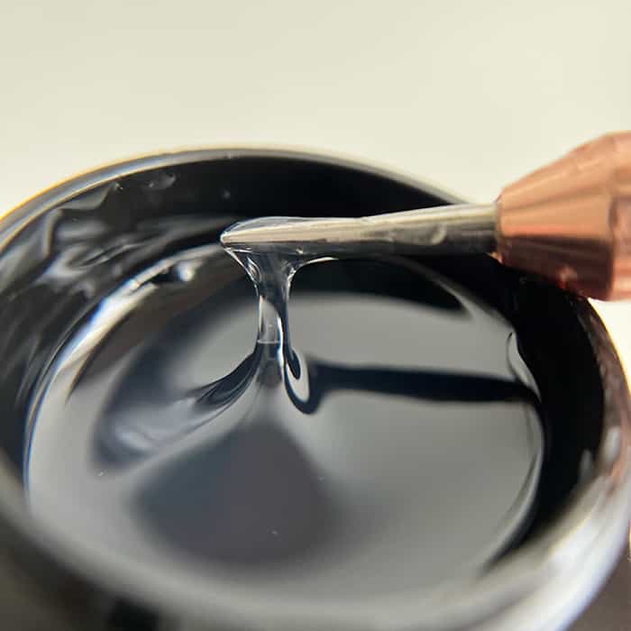 Le Gel à bijoux est d’une densité incroyable, je suis sûr que tu seras aussi charmé que moi. Texture semi épaisse pour que les bijoux restent en place, mais en même temps auto nivelant pour ne pas avoir de bourrelet autour. Ce gel contient des fibres synthétiques qui donneront de la solidité à tes montages.