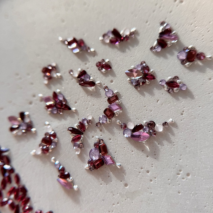Un diamant forme est un cristal taillé dans une forme précise (goutte, losange, ovale, etc.) avec une base plate, conçu pour être facilement intégré aux montages de bijoux d’ongles.