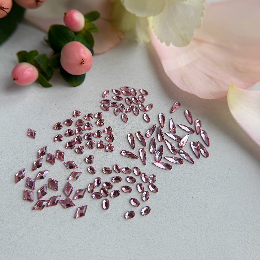 Un diamant forme est un cristal taillé dans une forme précise (goutte, losange, ovale, etc.) avec une base plate, conçu pour être facilement intégré aux montages de bijoux d’ongles.