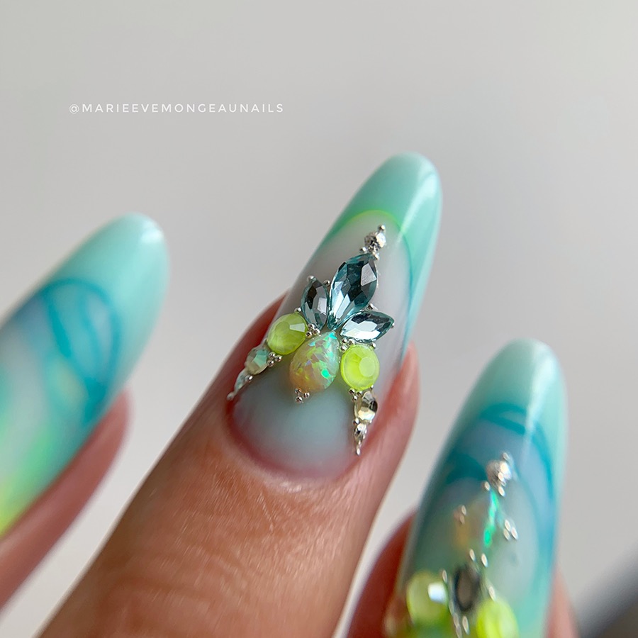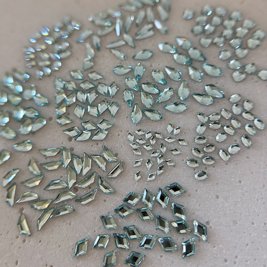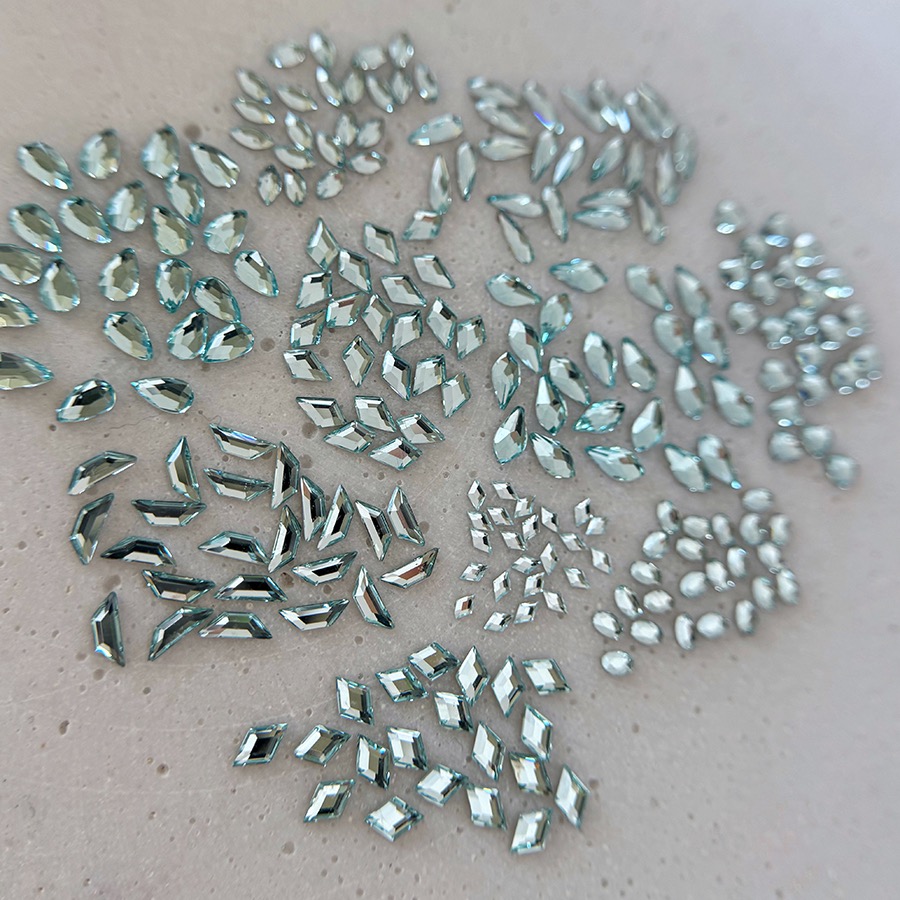 Un diamant forme est un cristal taillé dans une forme précise (goutte, losange, ovale, etc.) avec une base plate, conçu pour être facilement intégré aux montages de bijoux d’ongles.